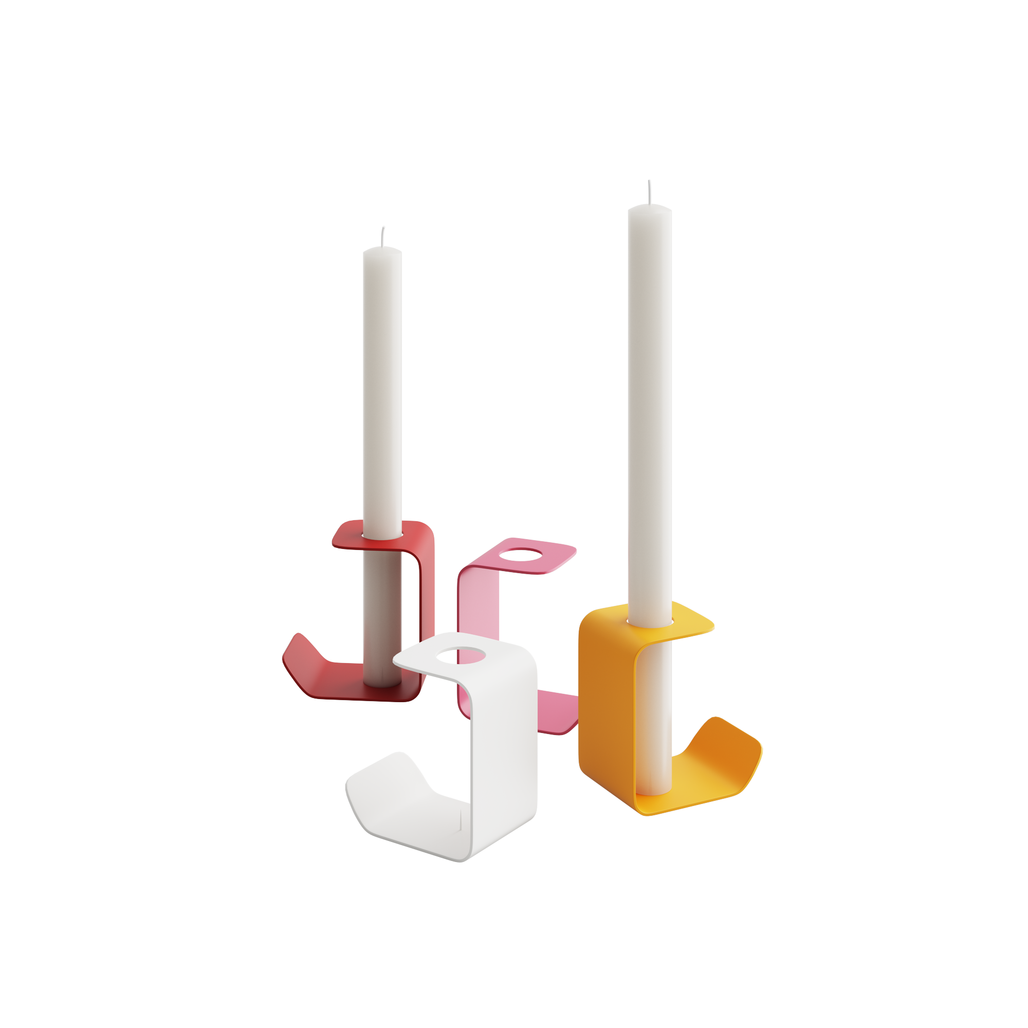 Simple candle holder to spice up any desired area of your home. This adorable accessory is made of precisely bent steel, designed to handle the candle steadily. Available in five playful colors and two compatible forms, Flec allows for endless mix & match with numerous shades of candles.