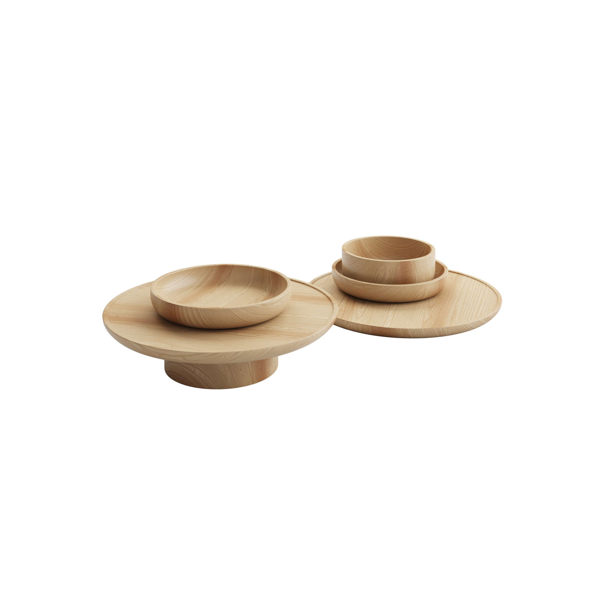 The stylish set of wooden dishes, perfect for serving a variety of delicacies, from fruits and vegetables, to cheese, desserts and more. Use magnets fitted on the bottom of each piece to transform separate serving tableware into a tall or low serving platter.